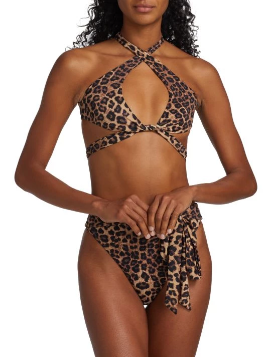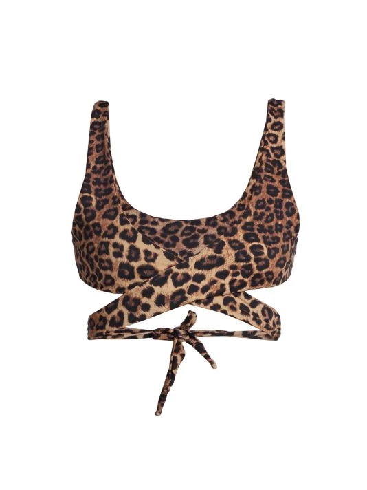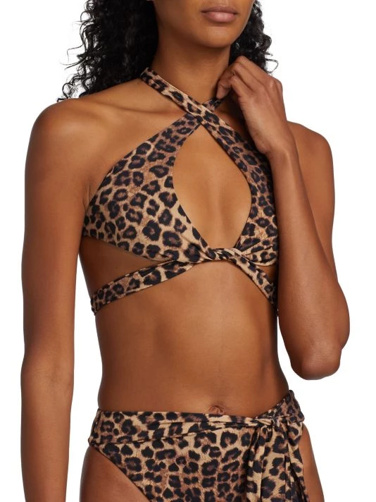 Decorated with a leopard print, GOOD AMERICAN’s ultra-versatile 10 Ways to Wear bikini top is detailed with a convertible wrap silhouette.