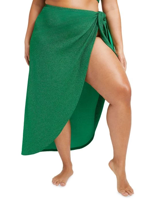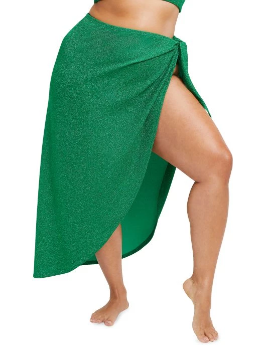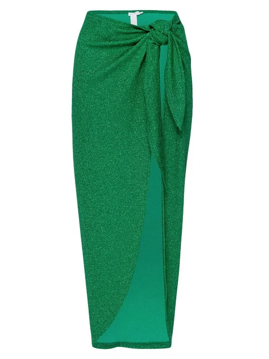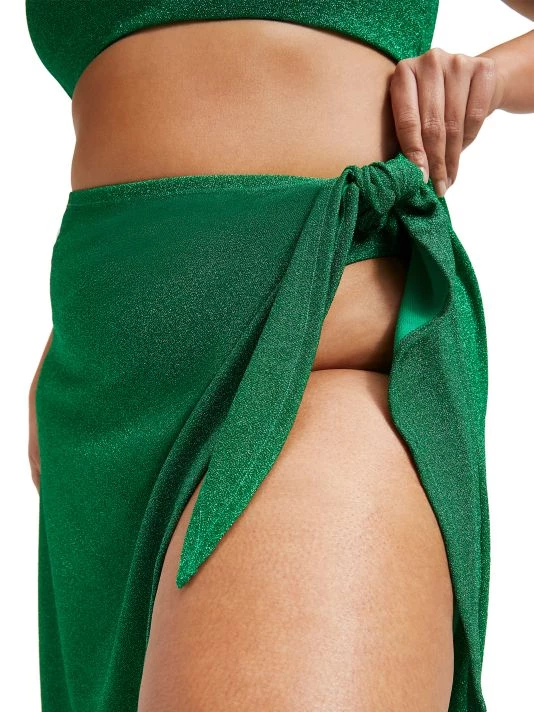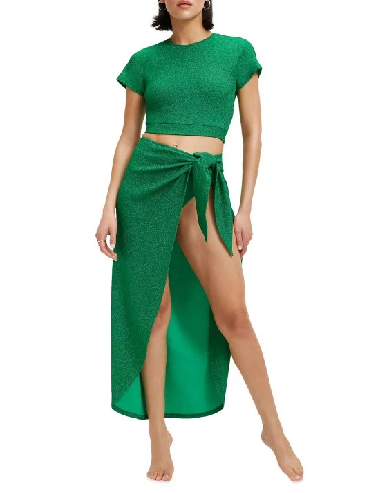 Crafted of sparkly fabric, GOOD AMERICAN’s sarong ties at the hip.