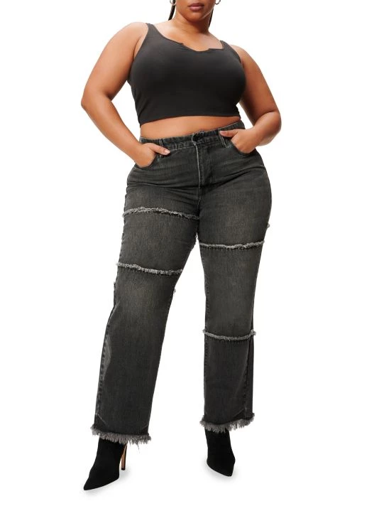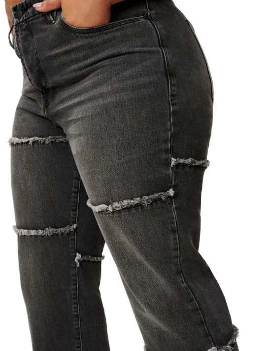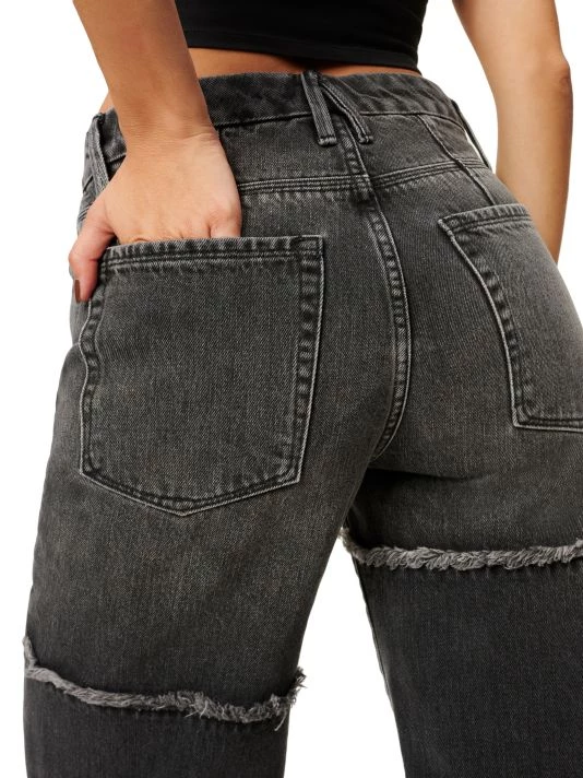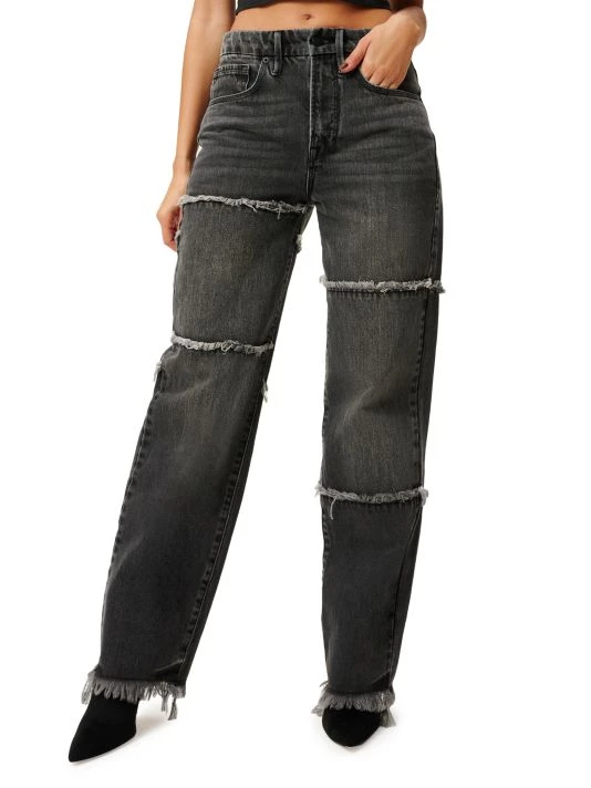 With frayed seams and distressed hems, these ’90s-inspired straight-leg jeans have a casually stylish feel.