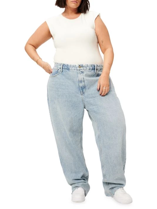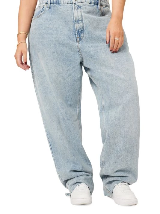 Styled with a high-rise waist, these straight-leg jeans have a loose, oversized silhouette.