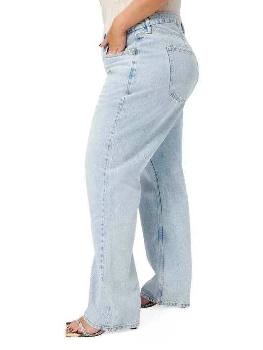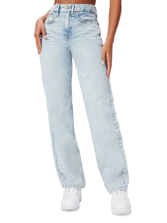 Crafted of comfortable stretch denim, these jeans are styled with a straight-fit and high rise.