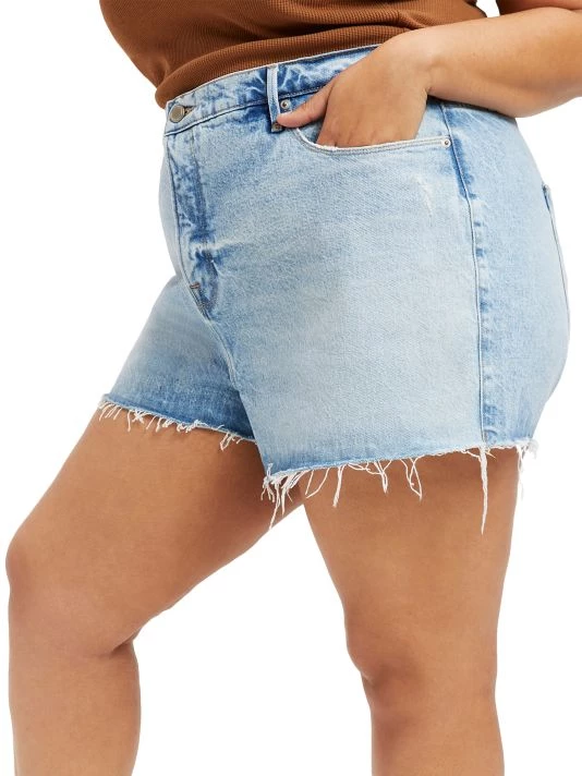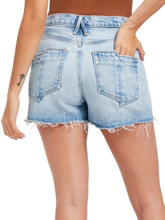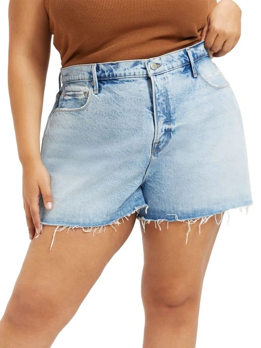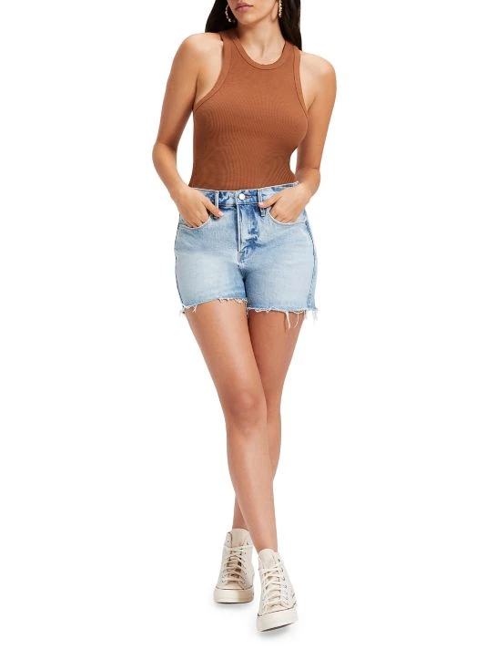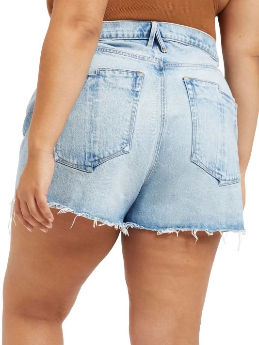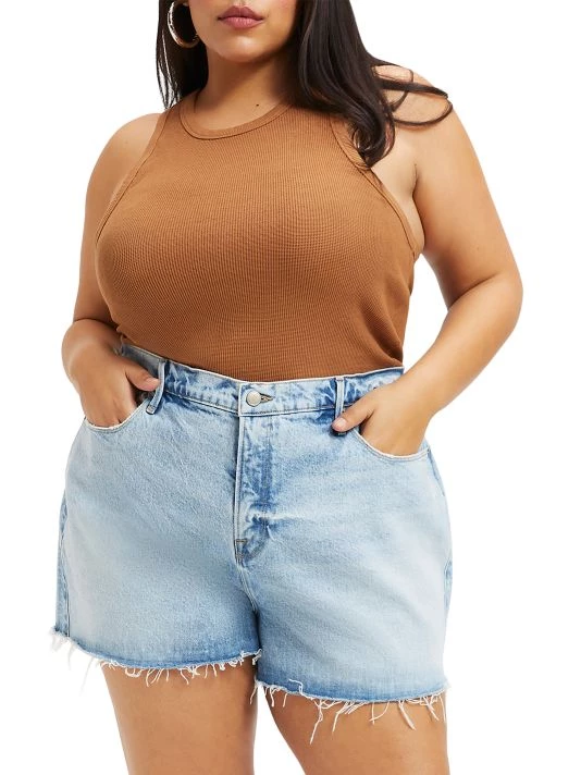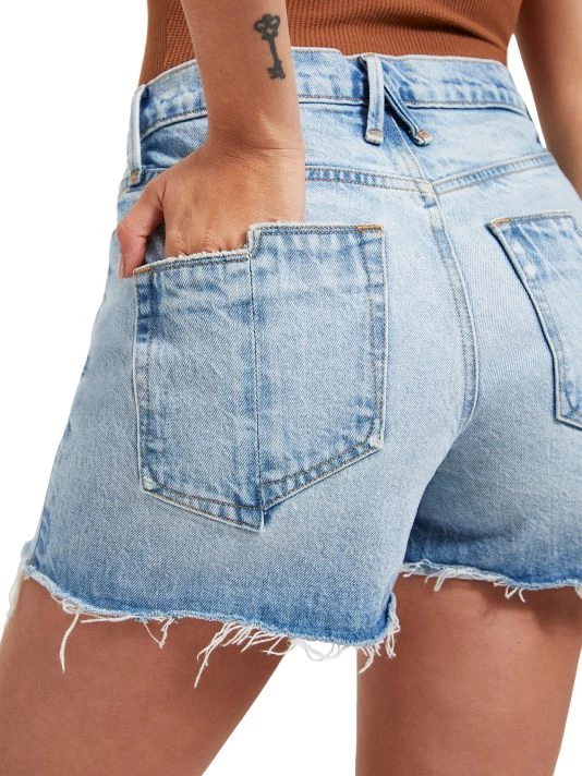 These ’90s-inspired denim shorts from GOOD AMERICAN feature a high rise that comfortably hugs the waist and feels roomier through the leg. A DIY-inspired split-level cut-off hem and split back pockets finish the look.