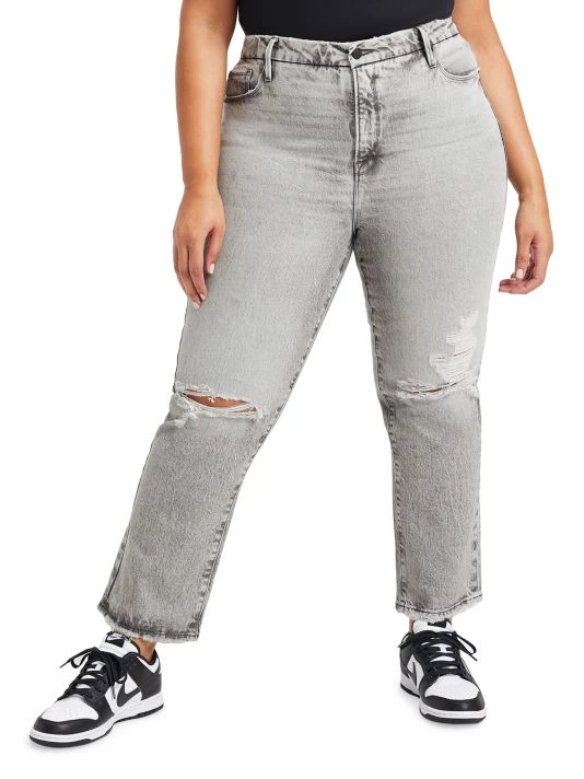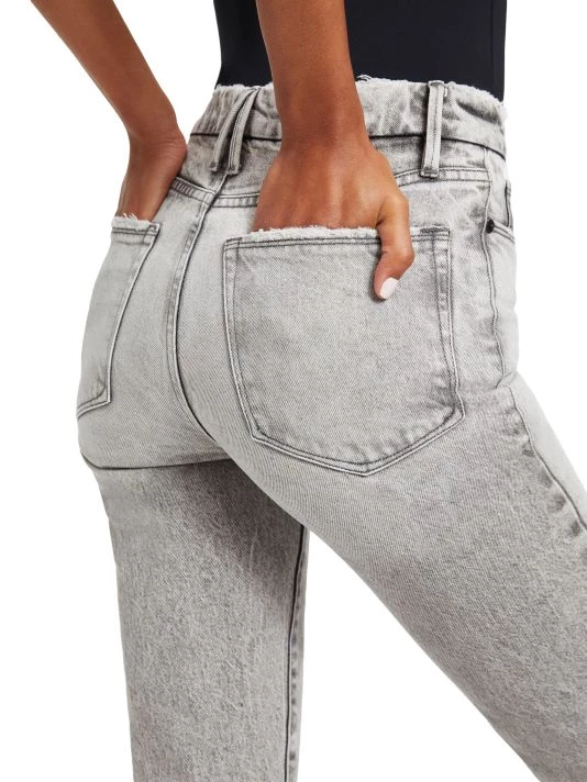 The GOOD AMERICAN Good Boy jeans are crafted of stretch denim in a high-waist, straight fit silhouette.