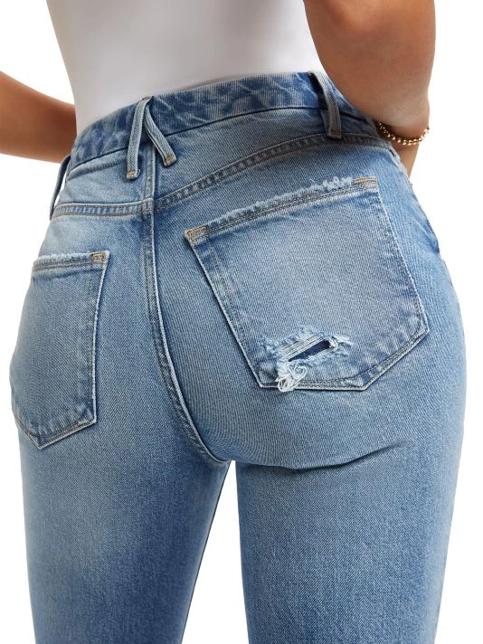 Crafted of stretch-denim, the Good Classic jeans by GOOD AMERICAN are designed in a high rise, bootcut silhouette.