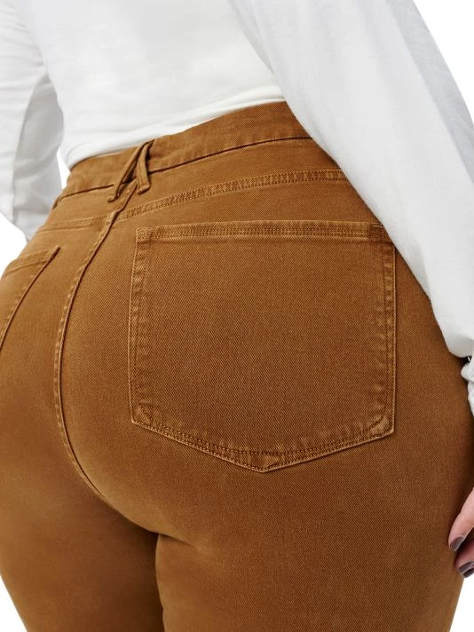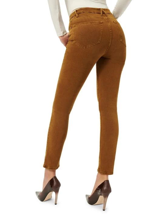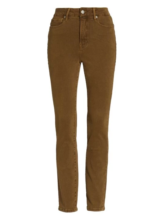 A tapered cigarette-style silhouette and a high-rise fit define these stretch-denim jeans.