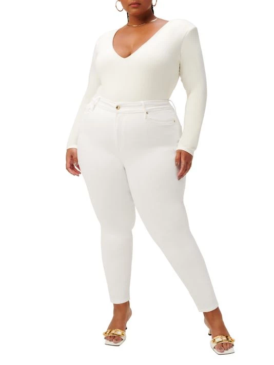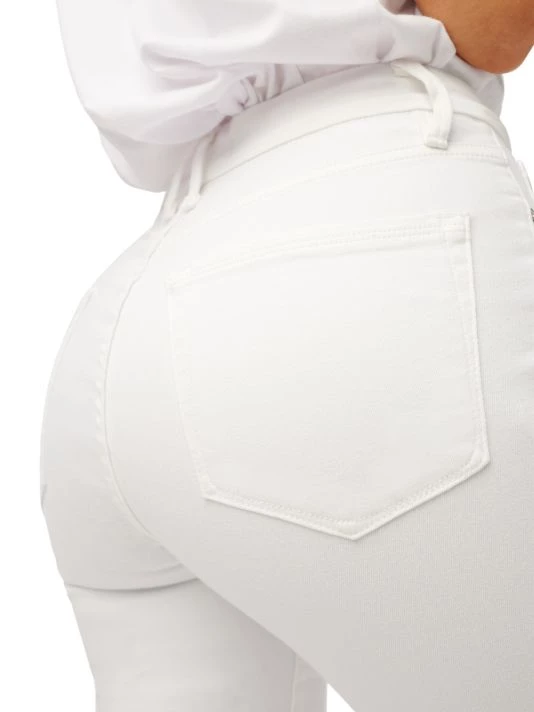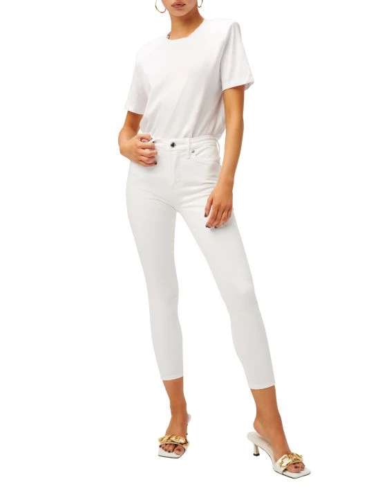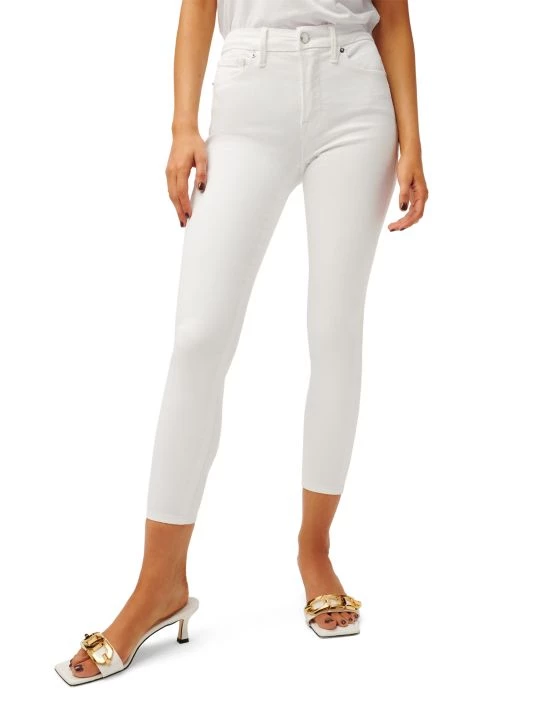 These high-rise cropped jeans feature extra stretch, flat-tummy tech, and a gap-proof waistband.
