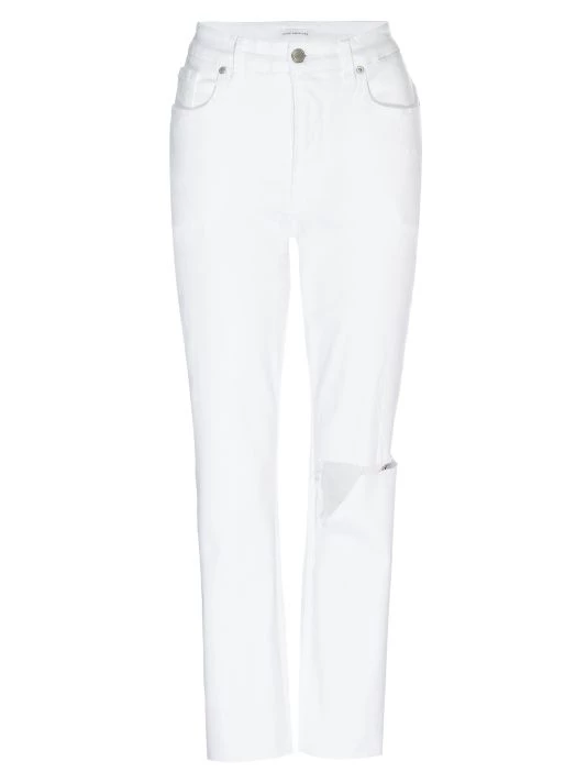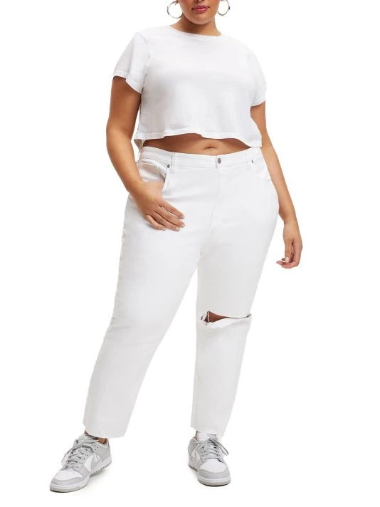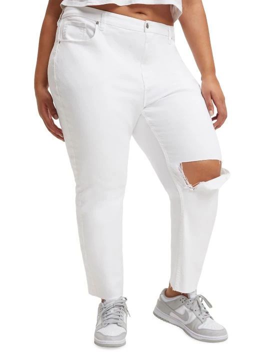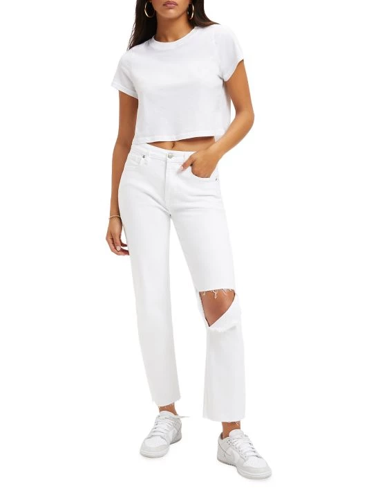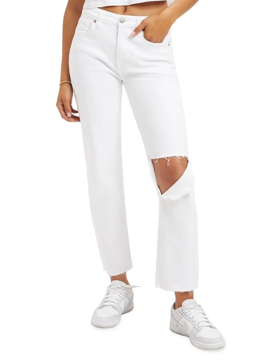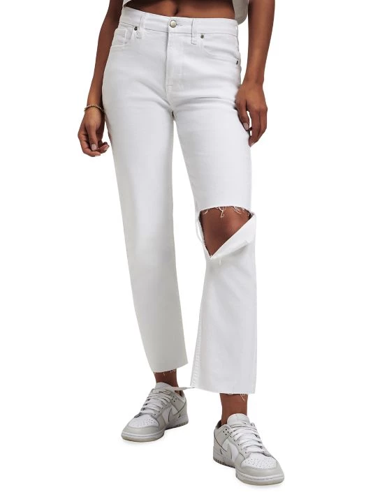 Crafted of stretch-denim, the Good Icon jeans by GOOD AMERICAN are designed in a straight fit with a distressed knee.