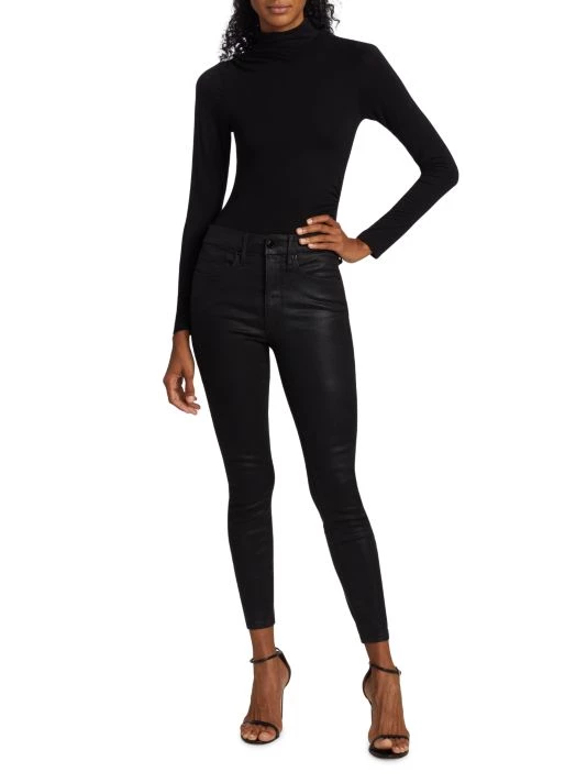 Cut from coated denim, GOOD AMERICAN’s Good Legs skinny jeans showcase a mid-rise waist and cropped hemlines.