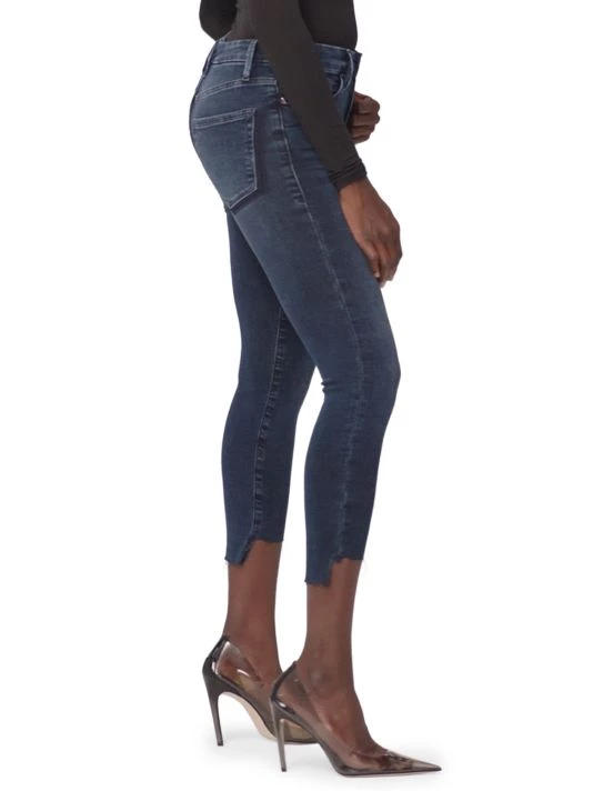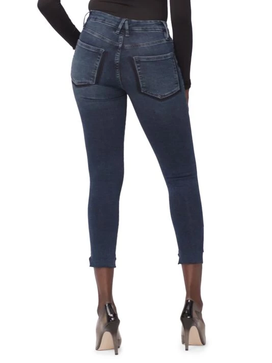 Cut with a skinny fit and flattering stretch, these jeans feature an unfinished step hem with shadow detailing.