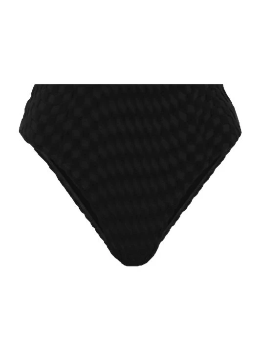 This bikini bottom from GOOD AMERICAN is a high-cut, high-waisted style with a jacquard wavey check pattern.