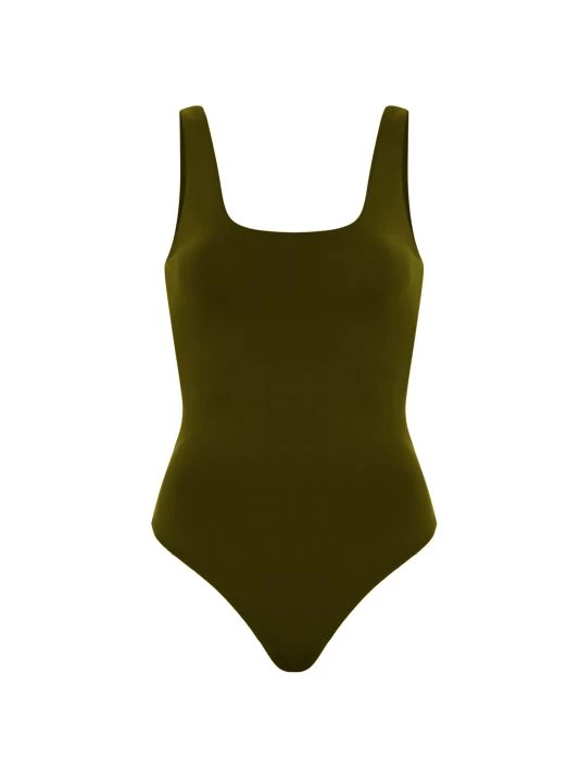 GOOD AMERICAN’s modern tank bodysuit is made of luxurious compressive scuba fabric designed to sculpt and smooth. A square neck with wide straps completes this classic thong-back style.
