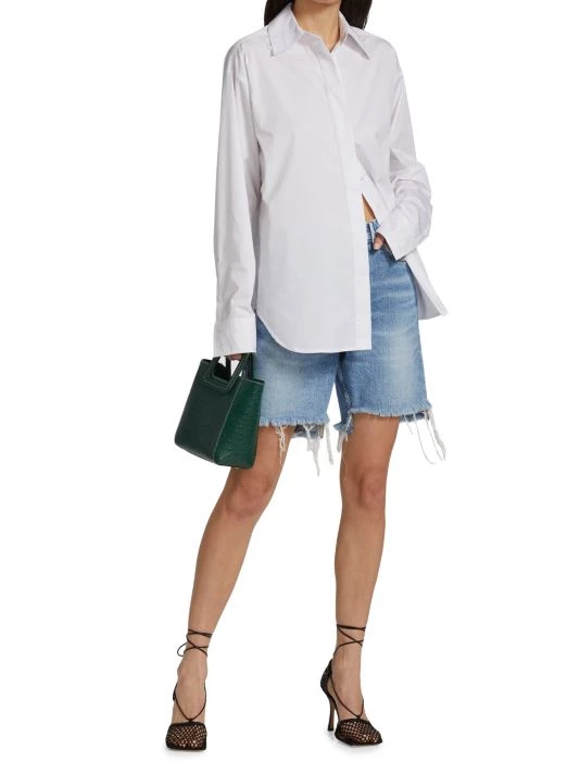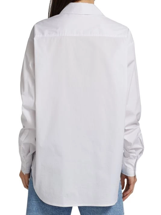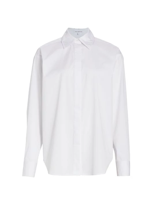 GOOD AMERICAN’s unisex button-front shirt is crafted of a cotton blend. This oversized style is detailed with a point collar, long sleeves, and dropped shoulders.