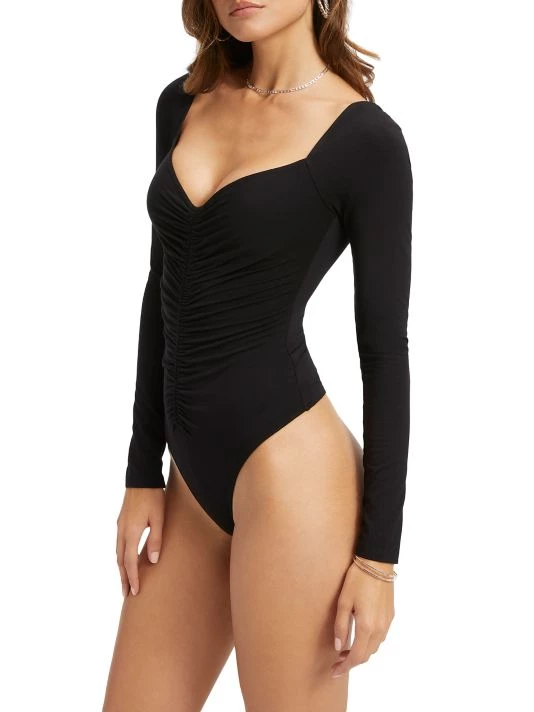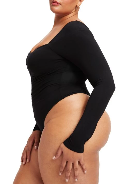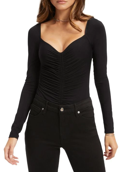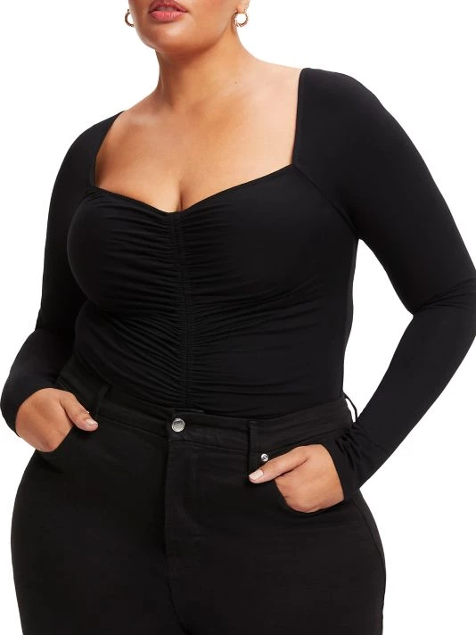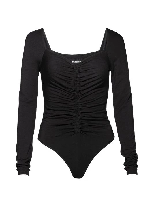 Ruching lends shape to GOOD AMERICAN’s fitted bodysuit, cut with a flattering square neck silhouette.