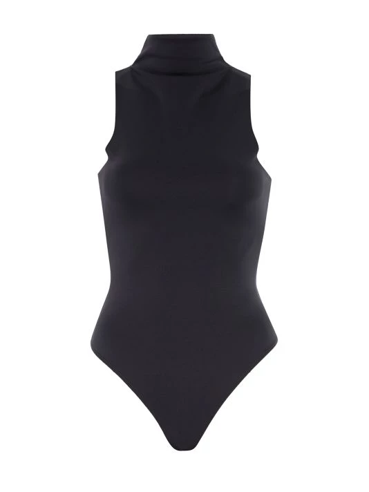 GOOD AMERICAN’s scuba mock turtleneck tank bodysuit is made with luxurious compressive fabric designed to sculpt and smooth.