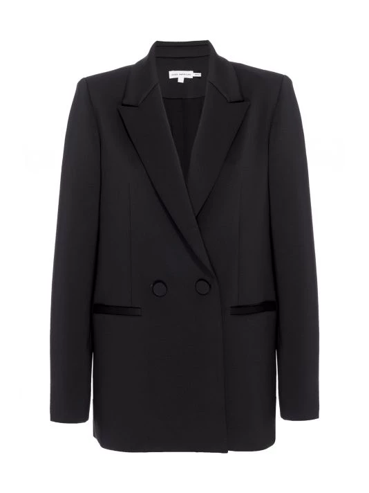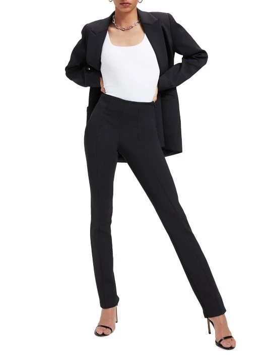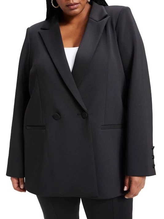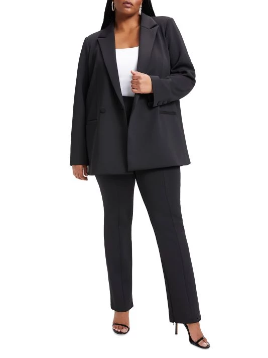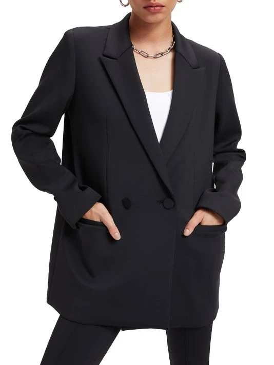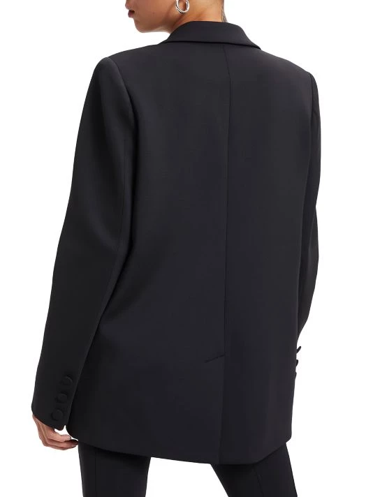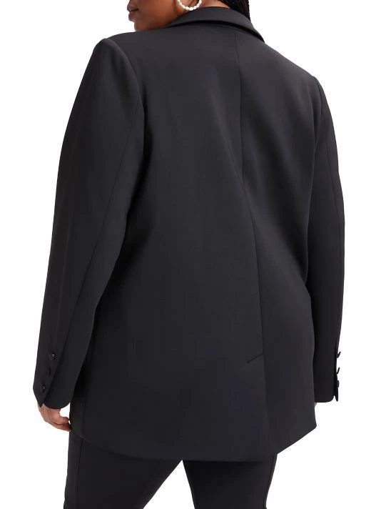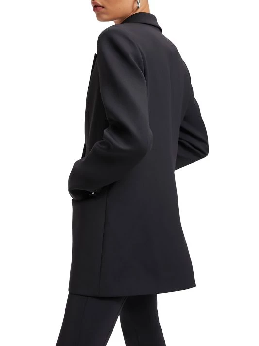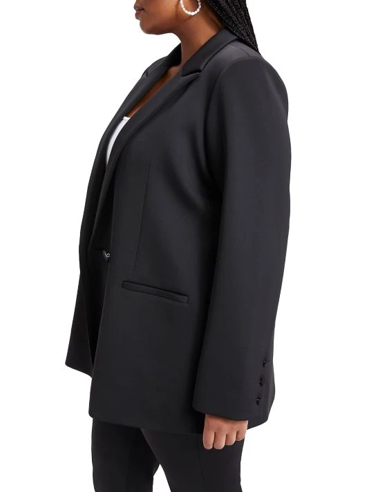 The GOOD AMERICAN Shiny Scuba blazer is designed in a longline, single-breasted silhouette.