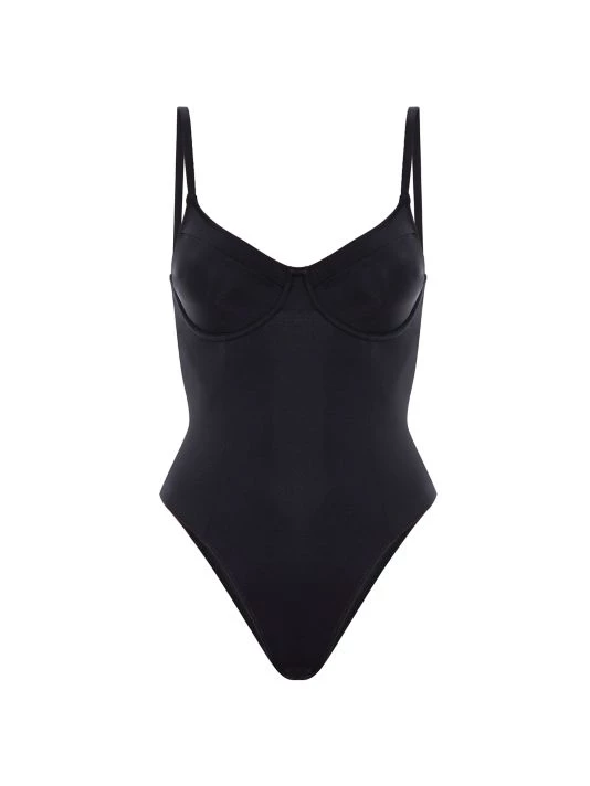 Khloé Kardashian’s label GOOD AMERICAN designs versatile everyday wear for stylish comfort. Crafted of jacquard, the Showoff one-piece swimsuit is designed with an alluring plunge neckline.
