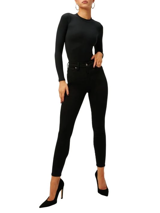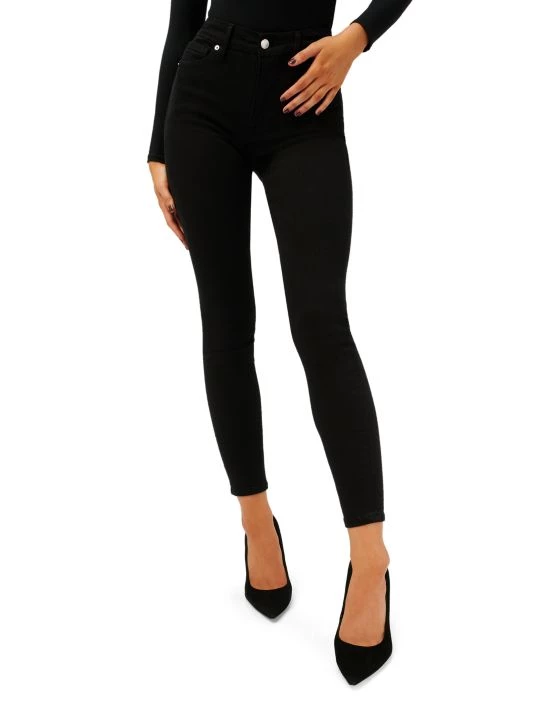 Finished with a frayed step hem, these high-rise, stretch-denim jeans have a slim fit with a kick-flare leg.