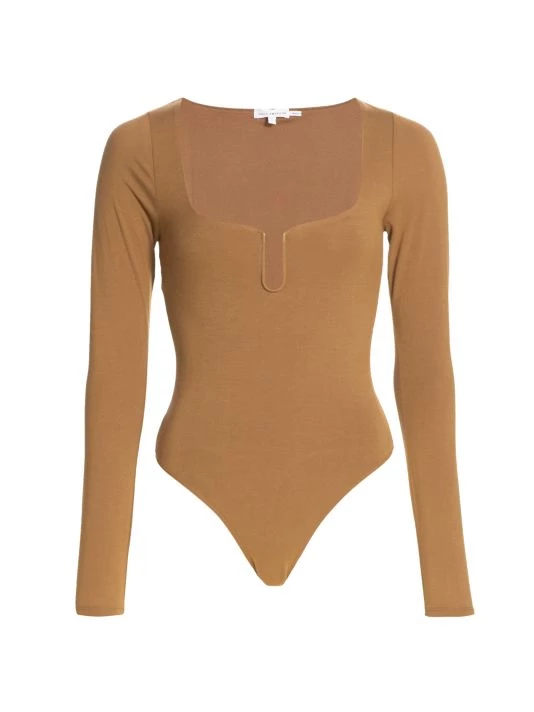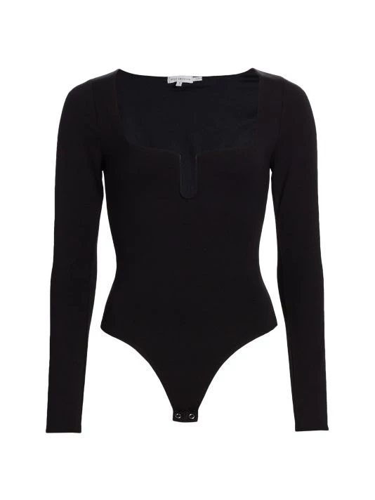 This long-sleeve bodysuit is designed with deep u-bar detailing and a scoop neckline.