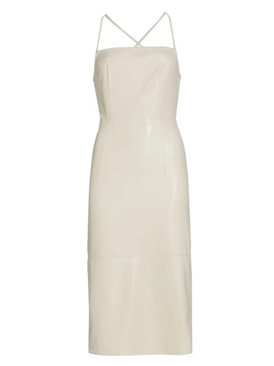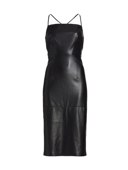 From the Better Than Leather Collection. This form-fitting dress is crafted of faux leather with lace-up details at the back.