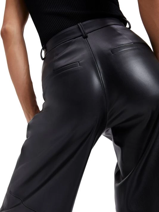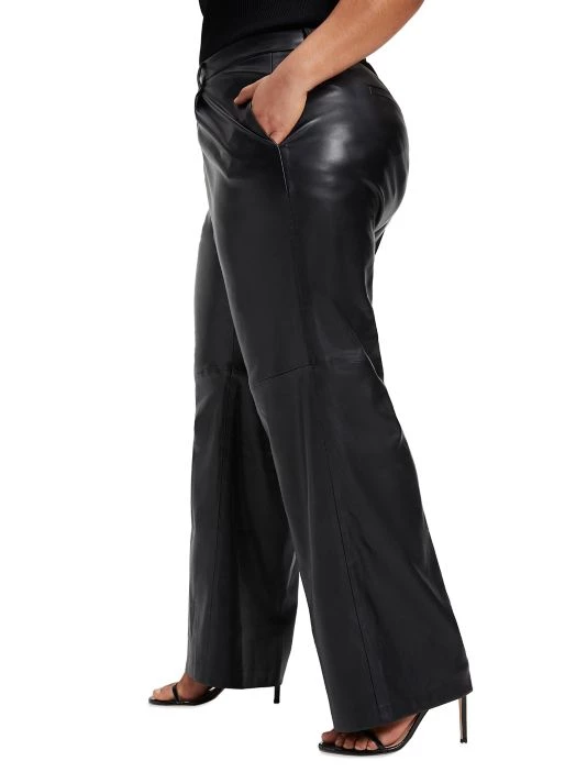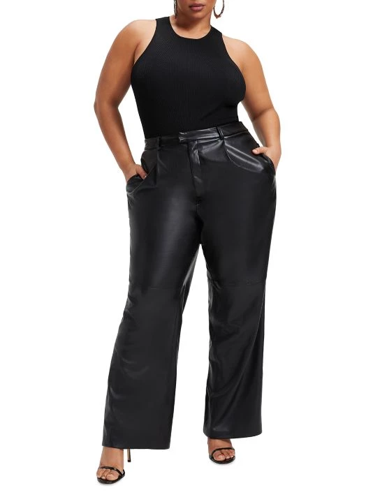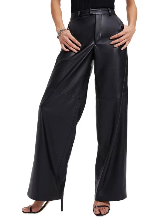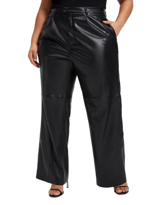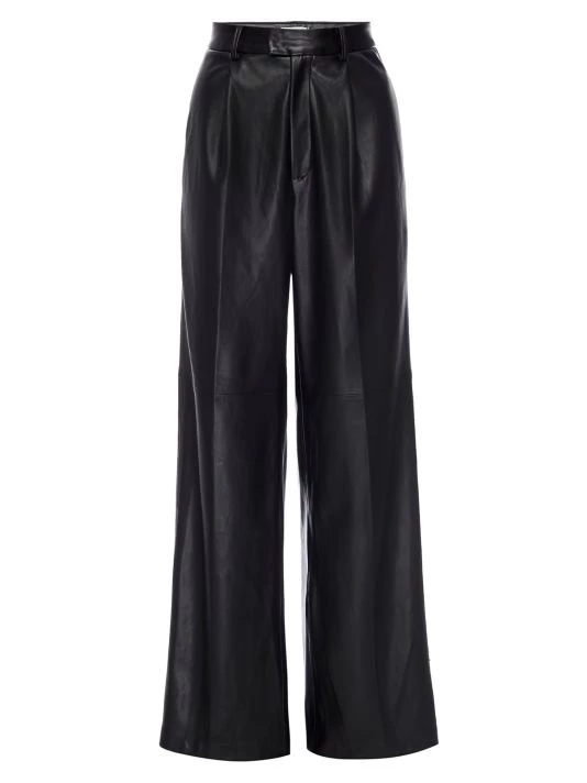 Crafted from faux leather, these pleated pants have a flattering wide-leg silhouette.