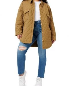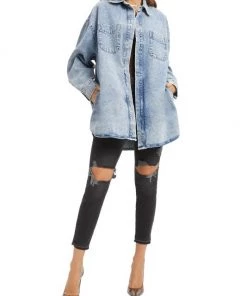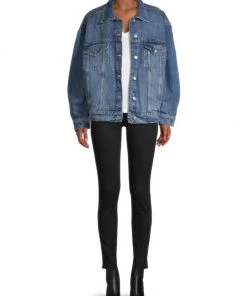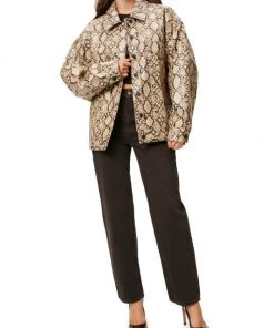 GOOD AMERICAN Oversized Faux Python Trucker Jacket Golden Snake