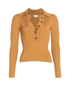 GOOD AMERICAN Plaited Rib Polo Shirt Black